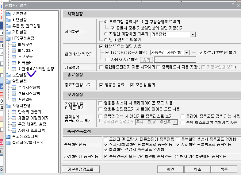 2. HTS 왼쪽 상단 기능 메뉴 클릭